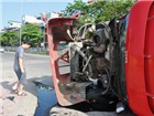 Container lật ngang, phá nát dải phân cách trước UBND tỉnh