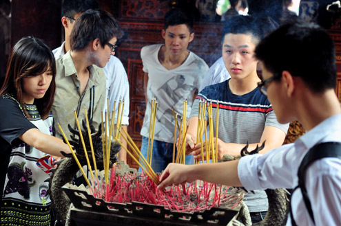 Sĩ tử chen chân cầu may trước kỳ thi tốt nghiệp
