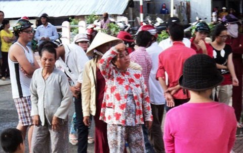 Người nhà nạn nhân "quây" UBND huyện (Ảnh: Dân trí)