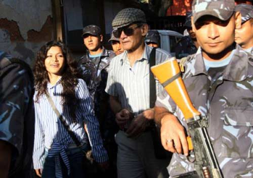 Charles Sobhraj (giữa) và cô vợ trẻ y cưới khi đang thụ án chung thân tại Nepal.