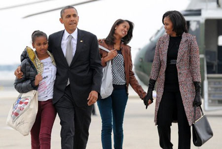 Tổng thống Obama và gia đ́nh đă trở về Nhà Trắng vào chiều qua 7/11.