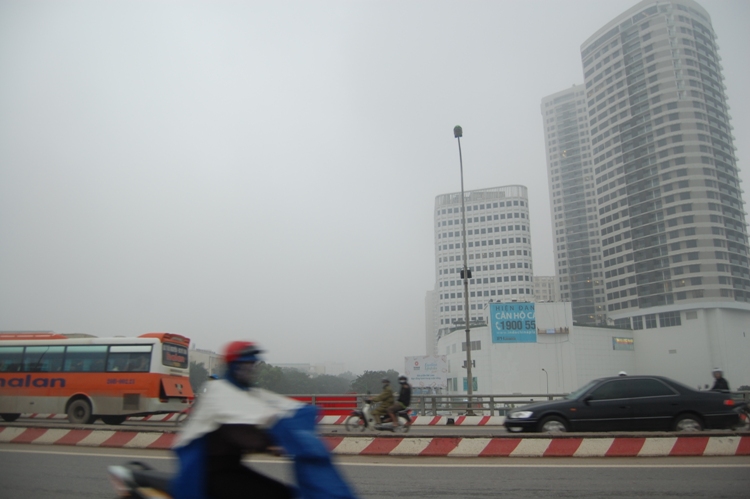 Các tuyến phố ở khu vực ngoại thành như Pháp Vân, Phạm Hùng, Phạm Văn Đồng, Nguyễn Xiển… có lượng sương mù dày đặc hơn cả, tầm nhìn xa không vượt quá 30m.