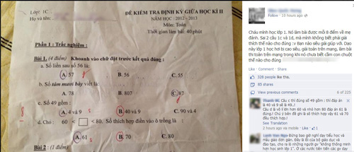 Bài kiểm tra Toán của học sinh lớp 1 làm xôn xao cộng đồng mạng