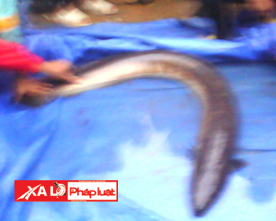 Con cá chạch nặng hơn 15kg do người xóm Chiềng bắt được (Hình chụp từ điện thoại, do người dân cung cấp)