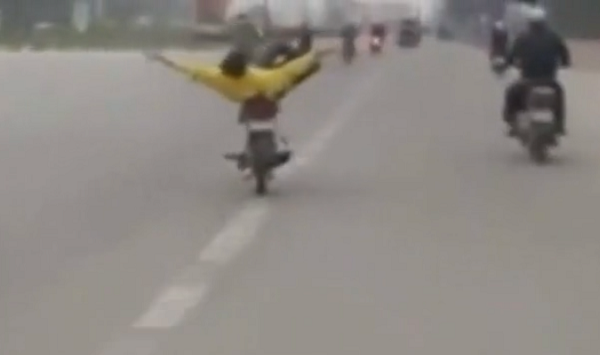 Rùng mình xem quái xế đi xe vắt chéo chân, đánh võng trên đường