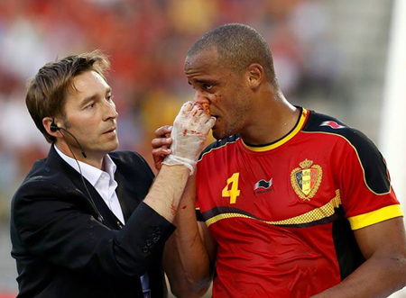 Bị vỡ mũi, Vincent Kompany vẫn chơi hết trận cho tuyển Bỉ
