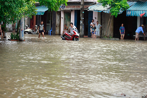 Thanh niên Hải Pḥng bơi ngoài đường trước giờ băo về
