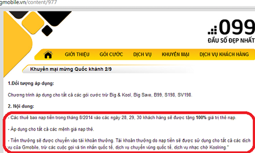 Old  Default Gmobile khuyến mãi 100% giá trị thẻ nạp: Đúng hay sai?