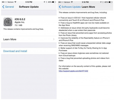 Trong bản nâng cấp mới nhất, Apple cho biết sẽ bổ sung các tính năng mới, và sửa các lỗi phát sinh từ bản iOS 8.0.1. “Chúng tôi thực sự xin lỗi vì sự bất tiện trên với người dùng iPhone 6 và iPhone 6 Plus. Đây là những người bị ảnh hưởng trực tiếp từ nền tảng iOS 8.0.1”.