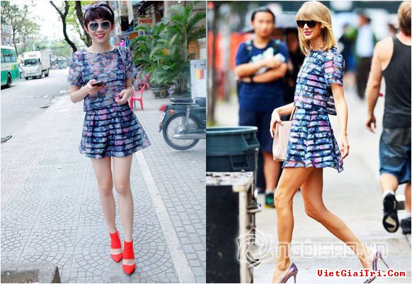 Tuy nhiên, một số cư dân mạng đã nhanh chóng phát hiện ra chiếc váy của Tóc Tiên giống y hệt bộ cánh màTaylor Swift đã diện trước đó khá lâu, chỉ khác ở cách phối đồ.