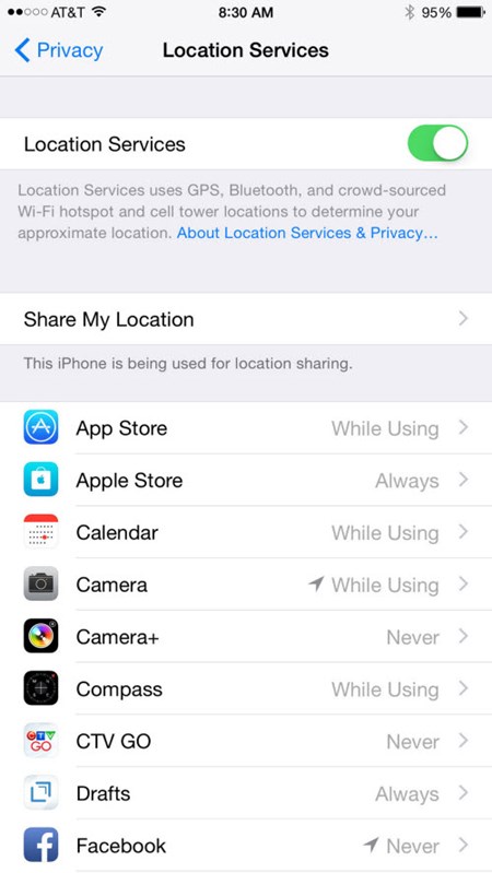 GPS là một trong những yếu tố quan trọng của smartphone, tuy nhiên nhiều ứng dụng đáng ra không cần phải sử dụng GPS. Settings > Privacy > Location Services. Tại đây, bạn chọn Never cho những ứng dụng không cần thiết.