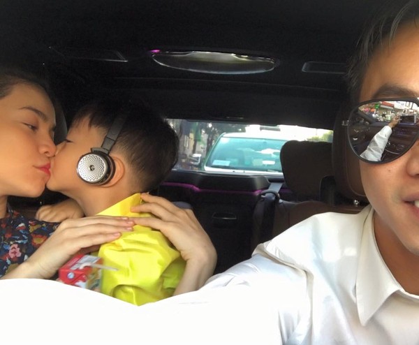 Trong bức ảnh đi kèm, Hà Hồ đang hôn Subeo rất tình cảm, trong khi đó Cường Đô La dùng điện thoại chụp lại khoảnh khắc đáng yêu của họ. .