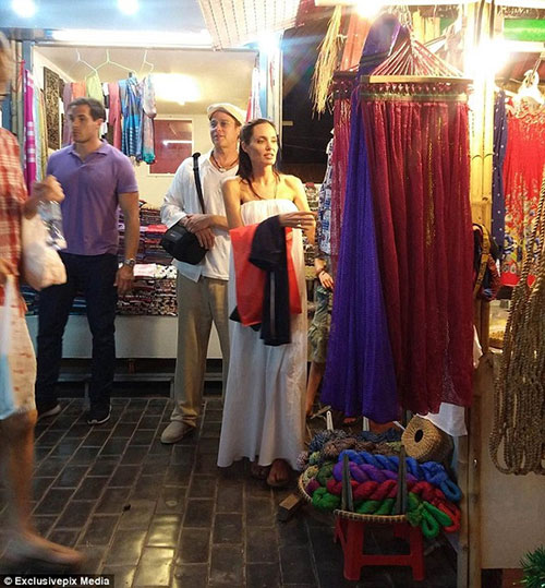 Trước đó, Brad Pitt và Angelina Jolie đã có chuyến đi tới Campuchia. Cả hai được bắt gặp khi đang đi dạo và mua sắm tại một khu chợ đêm cùng con gái Shiloh.