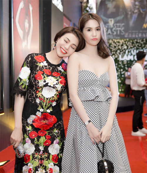 Trà Ngọc Hằng tới tham dự sự kiện cùng cô bạn thân Ngọc Trinh, nếu như Trà Ngọc Hằng gợi cảm nóng bỏng với đầm xuyên thấu dễ làm "nóng mắt" người khác thì Ngọc Trinh lại gợi cảm nhẹ nhàng xinh đẹp bên cạnh.