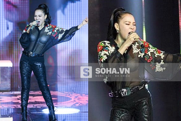 Chiếc áo của Thu Minh trở thành "trong suốt" khi bị ánh sáng sân khấu chiếu vào.