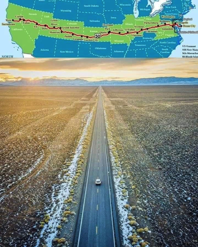 1. Băng qua toàn bộ Hoa Kỳ: Tuyến đường 50 trải dài hơn 3.000 dặm từ Ocean City, Maryland ở Bờ Đông đến Sacramento, California ở Bờ Tây. Đây là một trong số ít đường cao tốc mang đến cho bạn trải nghiệm thực sự từ bờ biển này sang bờ biển khác.