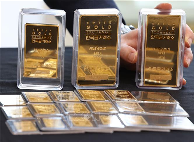 Vàng miếng được giới thiệu tại Sàn giao dịch vàng ở Seoul, Hàn Quốc.