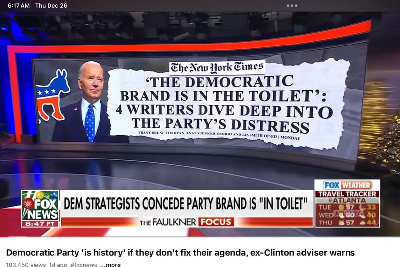 Không ít người theo đảng DC đã chỉ trích đảng DC rất nặng nề là đảng DC đã đi vào lịch sử (“in history”) xuống hố xí (“in toilet”) vì họ chủ trương chủ nghĩa thức tỉnh WOKE, DEI (Diversity Equity Inclusion) xa rời thực tế là dân Mỹ quan tâm về kinh tế, di dân, bất ổn xã hội vì tội ác gia tăng bởi chính sách dung dưỡng tội phạm của đảng DC và nguy hiểm hơn hết khiến dân Mỹ kinh hoàng do chính sách mở cửa biên giới của đảng DC. Không biết bao nhiêu băng đảng gây nhiều tội ác tràn vào nước Mỹ, nạn buôn bán ma túy gây ra hàng trăm ngàn người Mỹ tử vong do chất gây nghiện fentanyl sản xuất từ Trung Cộng tràn vào qua biên giới Mexico. Theo thống kê cho biết chỉ năm 2022 số tử vong của thanh niên Mỹ là gần 74 ngàn do chất fentanyl (Fentanyl deaths more than doubled during the pandemic, increasing from 36,359 in 2019 to 73,838 in 2022).