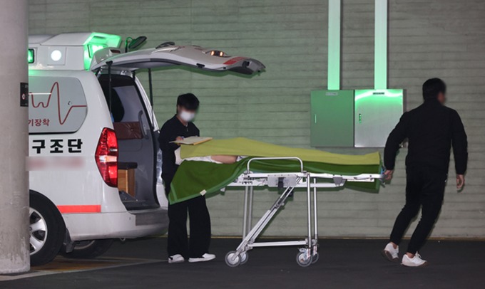 Một trong hai nạn nhân sống sót được đưa tới bệnh viện đại học Ewha. Ảnh: Yonhap