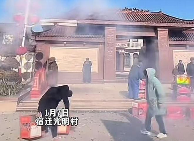Người dân đốt pháo hoa trước cổng dinh thự của anh Lưu Cường Đông bày tỏ lòng biết ơn hôm 7/1 vừa qua. Ảnh: 163