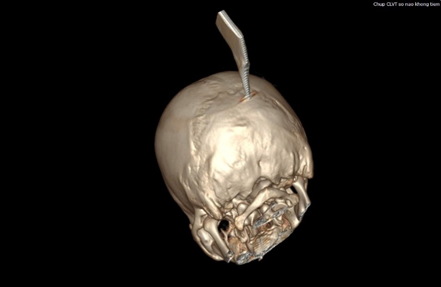 Thiếu niên 15 tổi nhập viện trong tình trạng "dị vật" sắc nhọn cắm ở đỉnh đầu, mang lại nhiều thách thức cho các bác sĩ.