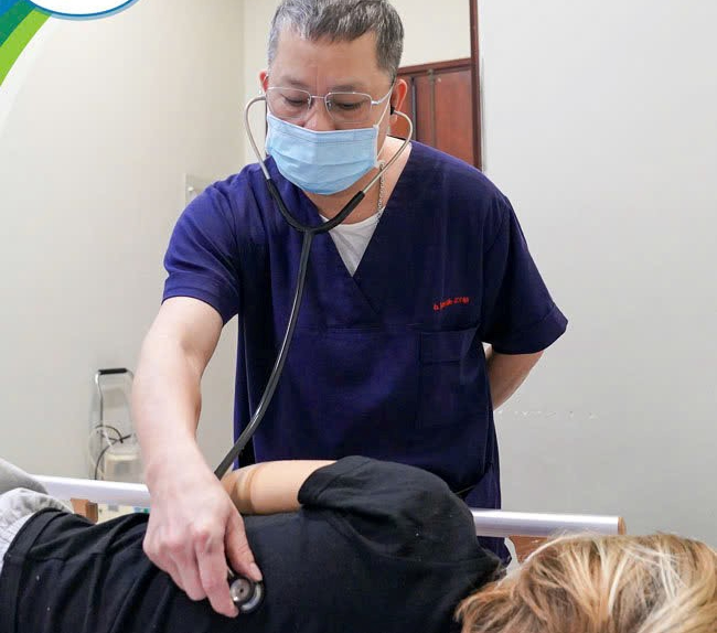 PGS.TS Tạ Anh Tuấn – Trưởng khoa Điều trị tích cực Nội khoa đang thăm khám cho bệnh nhi. Ảnh: BVCC
