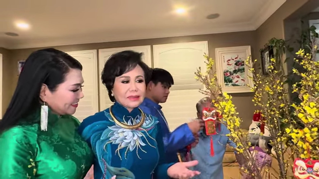 Để đón giao thừa, Ngọc Huyền trang hoàng nhà cửa lộng lẫy, với cây mai vàng thắm cũng nhiều đồ trang trí. Bản thân Ngọc Huyền và mẹ chồng Thanh Tuyền đều mặc áo dài rực rỡ.