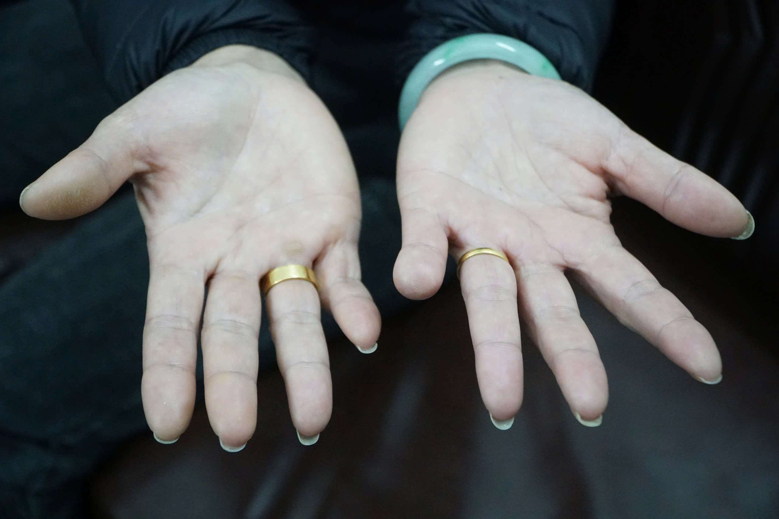 Ngón tay út của chị Hòa bị người chồng vũ phu chặt mất một đốt.