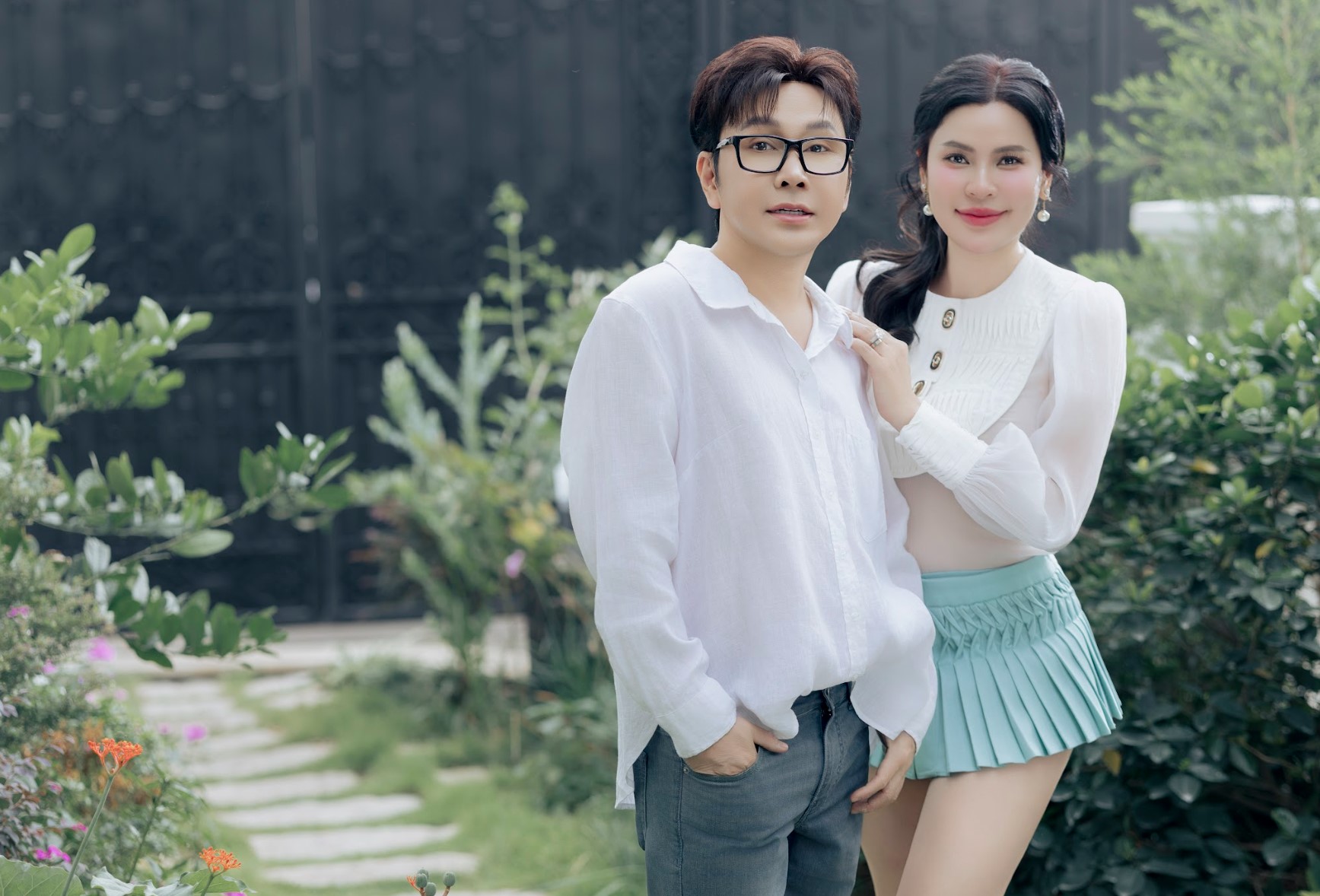 Nghệ sĩ Ưu tú Vũ Luân và Hoa hậu Phương Lê trong không gian căn biệt thự. (Ảnh: NVCC)