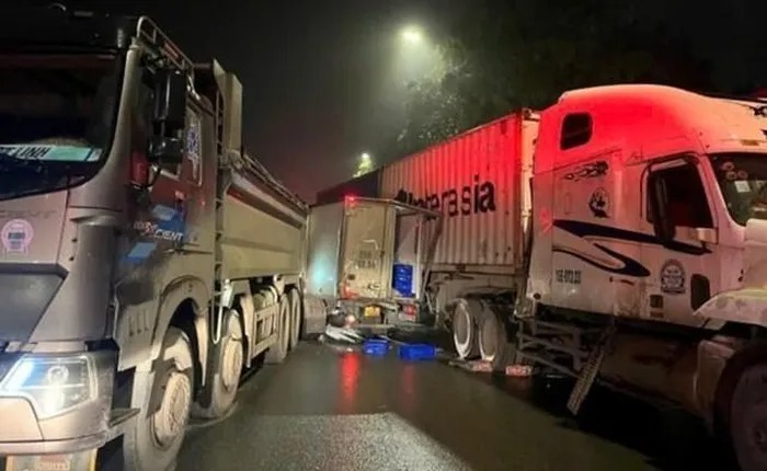 Ngay khi có mặt tại hiện trường, lực lượng chức năng xác định có 1 xe container va chạm với 2 xe tải chở hàng. Vụ va chạm khiến cabin 1 xe tải bị biến dạng do bị kẹp giữa 2 phương tiện còn lại, người lái xe cũng bị thương và mắc kẹt bên trong.