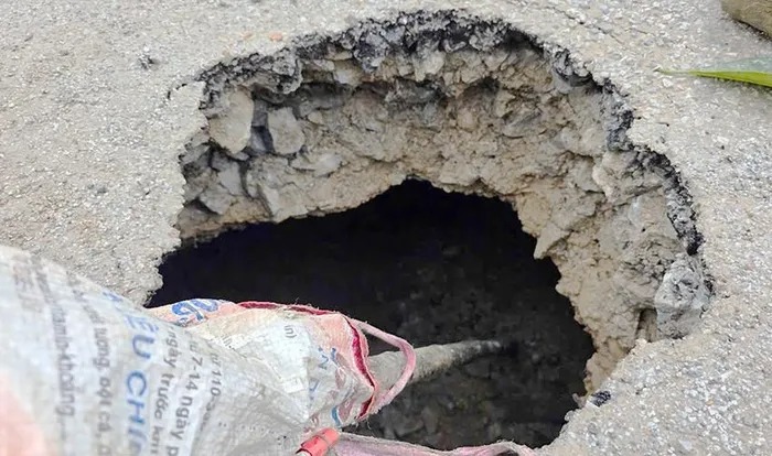 Theo kiểm tra của ngành chức năng, hố sụt lún có chiều sâu 2m, phía dưới hố rộng khoảng 4m.