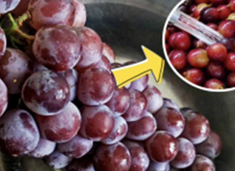 Chùm nho có cuống héo nhưng quả tươi hoặc ngược lại đều cho thấy khả năng nho bị ngâm hóa chất bảo quản.