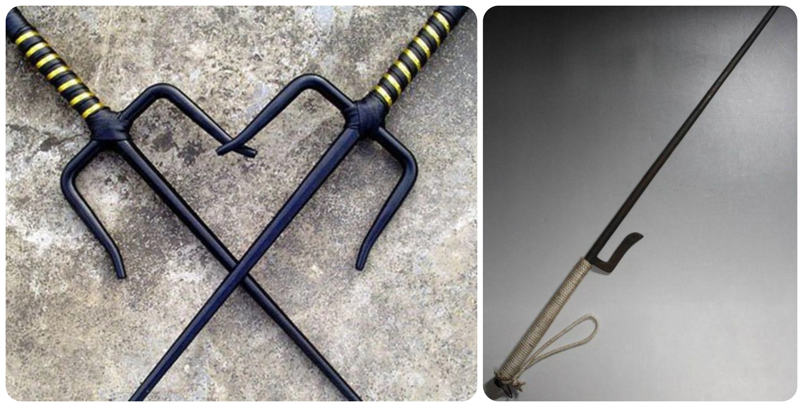 Bút giá xoa và thập thủ - món vũ khí chuyên khắc chế kiếm Nhật (ảnh: Kk News)
