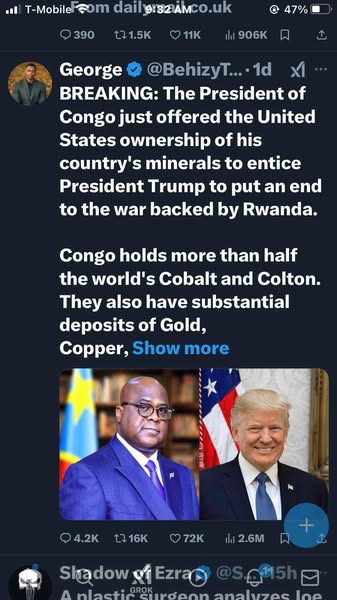 "Tổng thống Congo vừa đề nghị cho Mỹ quyền sở hữu khoáng sản của nước ông