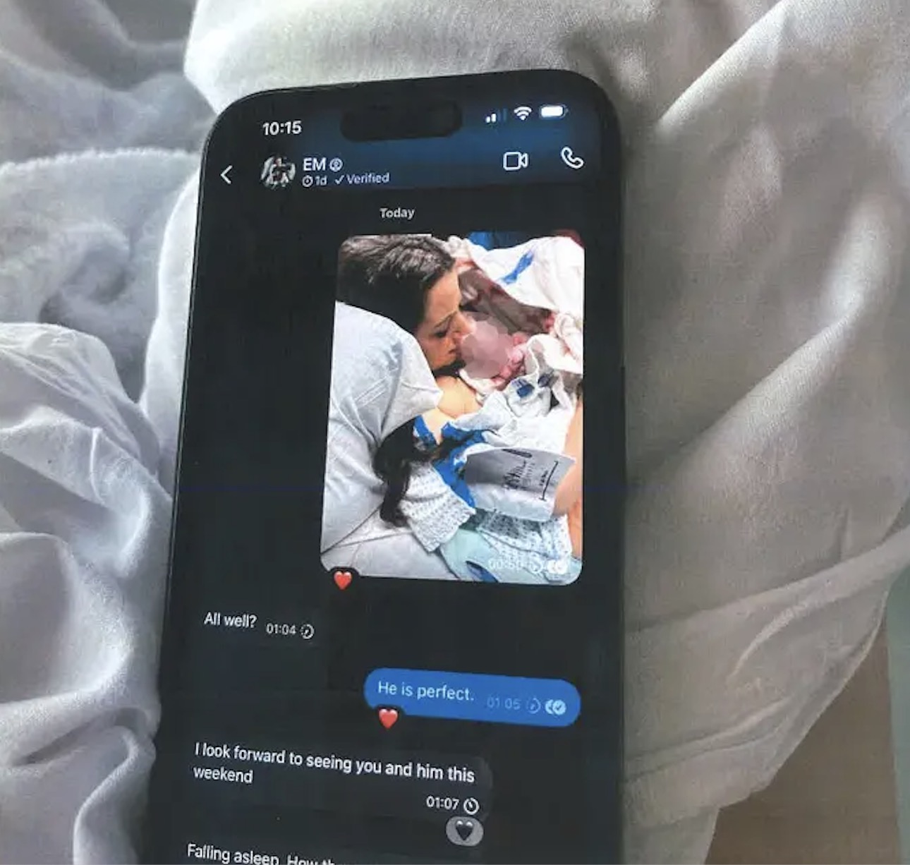 Ashley St. Clair chia sẻ bức ảnh chụp trên giường bệnh với đứa con trai mới sinh của cô trong cuộc trao đổi tin nhắn từ đơn xin xác định quan hệ cha con (Nguồn: Ṭa án Tối cao New York)