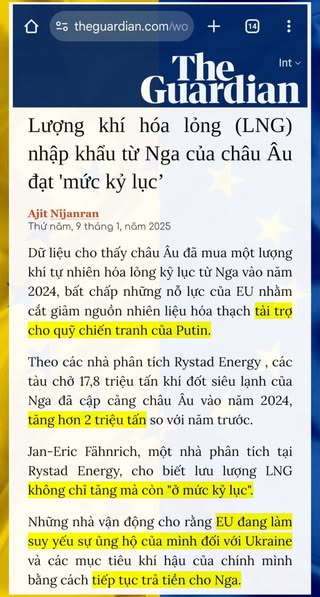 EU sát cánh cùng Ukraine, nhưng nghiện hít LNG của Nga.