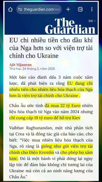 Khi một viên đạn từ Ukraine mua bằng tiền của EU bắn vào Nga, thì Ukr sẽ nhận lại một viên đại bác bắn từ Nga cũng mua bằng tiền của EU.