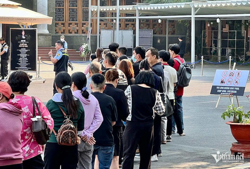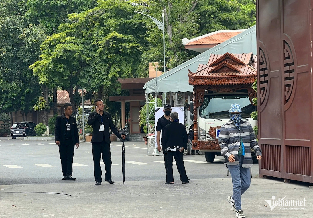 Đội ngũ bảo vệ được huy động với số lượng hơn chục người, đứng gác từ cổng tới khu vực trước sảnh lễ tang. Lễ viếng bắt đầu từ 14h nhưng theo ghi nhận của VietNamNet, các đoàn khách đến phải đăng ký, chờ gia đình thông báo và sắp xếp.