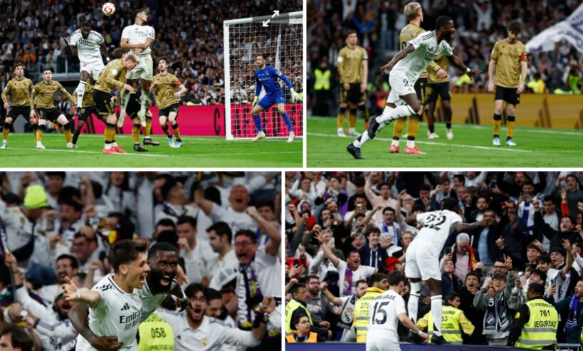 Khán đài Bernabeu vỡ òa sau bàn thắng muộn của Rudiger.