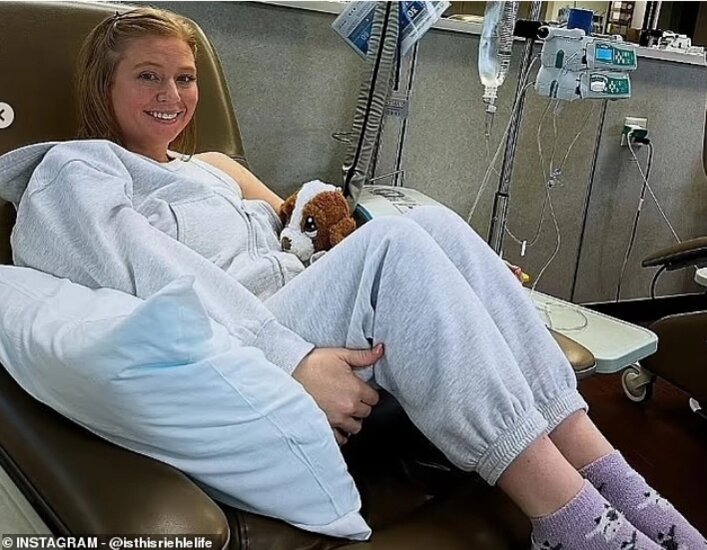 Vào tháng 12/2023, cô bị đau nửa đầu dữ dội, cơn đau lan đến tai và hàm, kèm mệt mỏi và lưỡi hơi đổi màu. Tuy nhiên, Riehle không nghĩ mình mắc bệnh nghiêm trọng. Ban đầu, bác sĩ chẩn đoán cô gặp vấn đề về khớp thái dương hàm (TMJ). Đến tháng 3/2024, kết quả sinh thiết xác nhận cô bị ung thư biểu mô tế bào vảy giai đoạn 4 ở lưỡi – căn bệnh thường gặp ở nam giới trên 65 tuổi có tiền sử hút thuốc. Các bác sĩ không rõ nguyên nhân khiến một phụ nữ trẻ như Riehle mắc bệnh này.