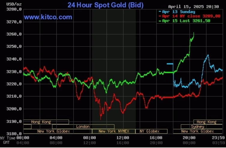 Sáng 16/4, giá vàng thế giới tăng thêm hơn 30 USD trong một giờ, lên mức cao kỷ lục mới tại 3.261 USD một ounce. Trước đó, chốt phiên giao dịch 15/4, kim loại quý tăng 20 USD lên 3.229 USD.