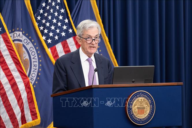 Chủ tịch Cục Dự trữ Liên bang Mỹ (Fed) Jerome Powell phát biểu tại cuộc họp báo ở Washington, D.C.