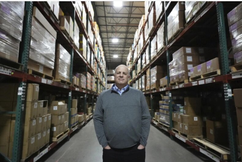 CEO Learning Resources Rick Woldenberg tại nhà kho ở Illinois ngày 11/4. Ảnh: AP