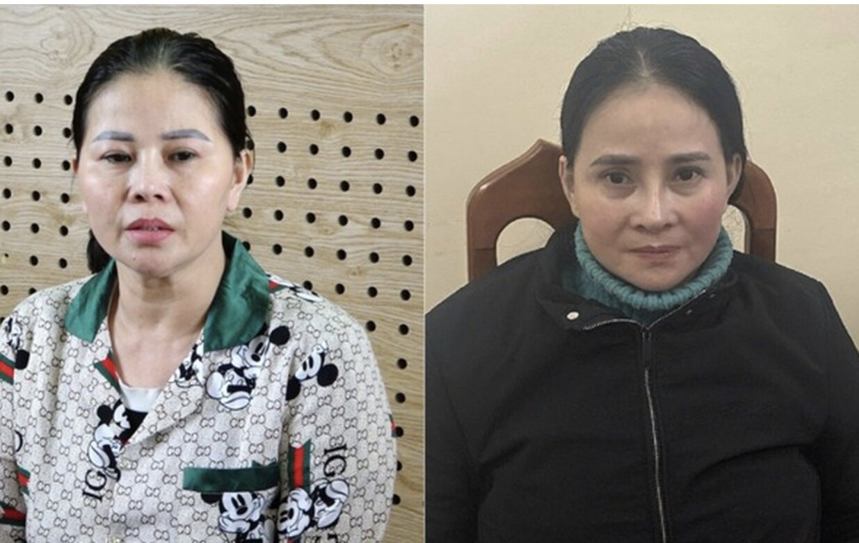 Các đối tượng Lê Thị Ánh Sương (phải) và Lê Thị Giang tại Cơ quan điều tra. Ảnh: Báo Quảng Bình
