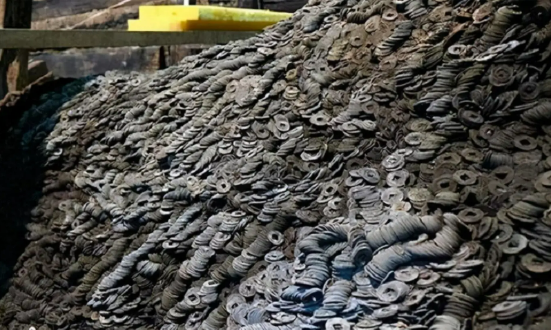 Theo đó, họ phát hiện lối vào lăng mộ là một “con đường” lát hoàn toàn bằng tiền đồng. Những tiền đồng này được xâu thành chuỗi màu xanh lục, được xếp dàn thành hàng dài 10,5m và rộng 4,56m – điều chưa từng thấy trong khảo cổ Trung Quốc. Các chuyên gia ước tính có tổng cộng 2,25 triệu đồng tiền xu, nặng khoảng 30 tấn, tương đương 450.000 NDT. Điều này phần nào cho thấy chủ nhân của ngôi mộ có địa vị rất cao quý.