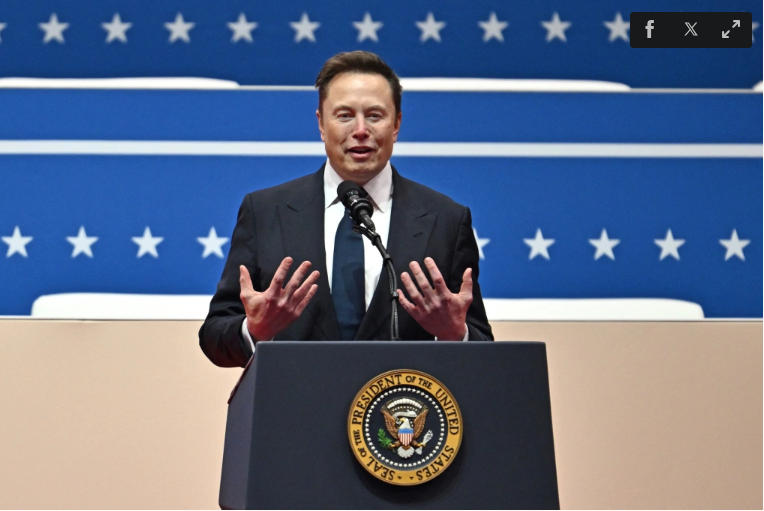 Ông Elon Musk phát biểu tại nhà thi đấu Capital One Arena ở thủ đô Washington ngày 20/1. Ảnh: AFP