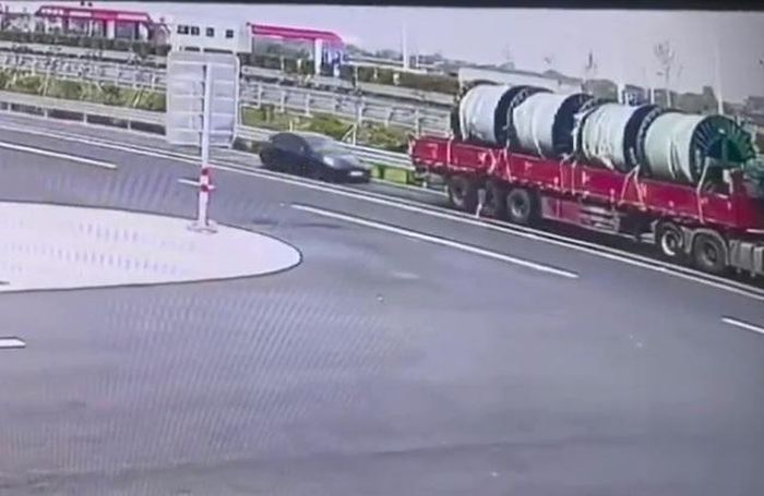 Trong clip, chiếc Tesla Model 3 màu đen đang chạy với tốc độ cao trên đường thì bất ngờ lao thẳng vào đuôi chiếc xe đầu kéo dừng đỗ bên đường. Tài xế lúc này đang kiểm tra hàng bên hông xe.