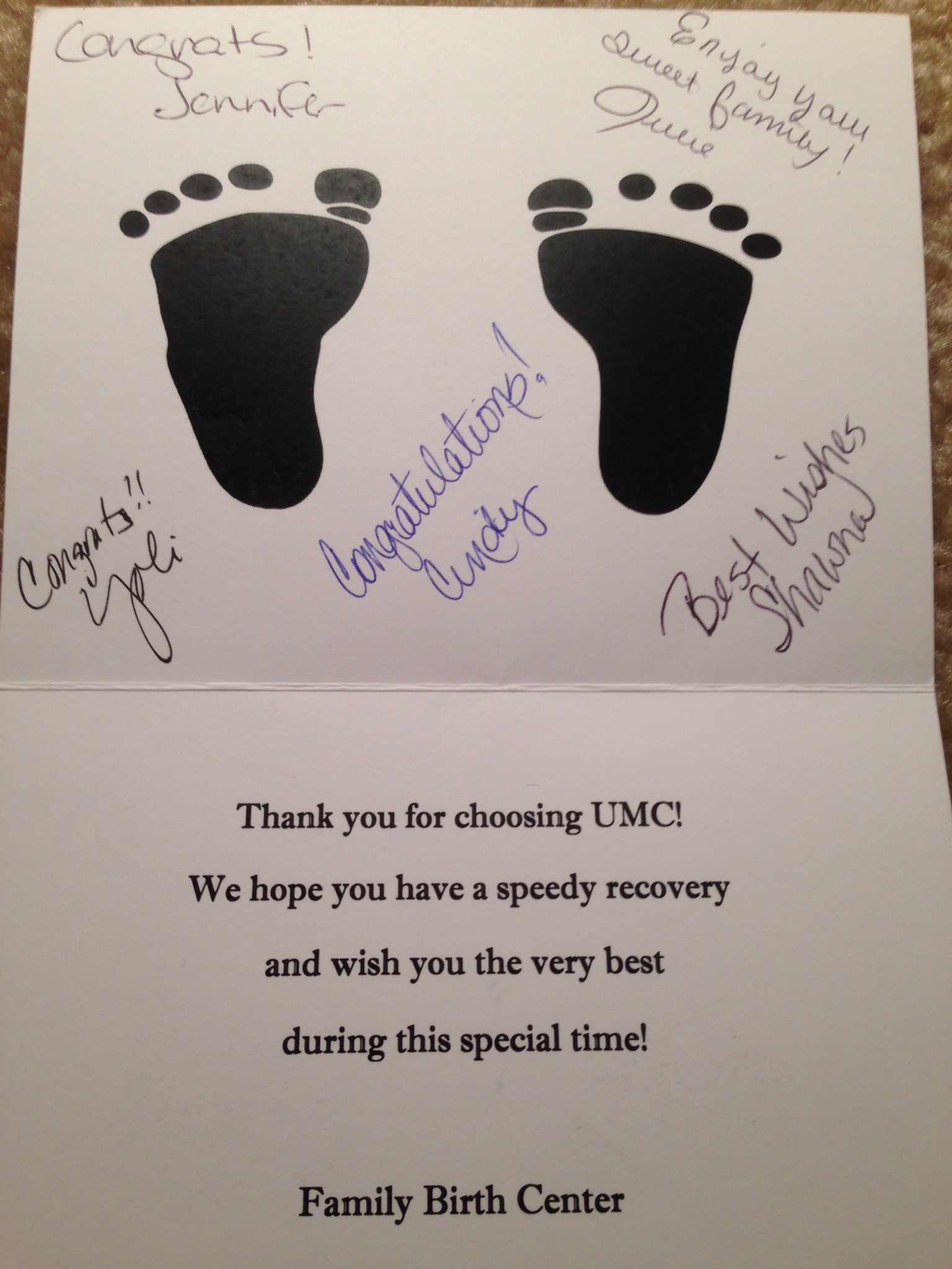 Phụ huynh được nhận một tấm thiệp chúc mừng xinh xinh của tập thể đỡ đẻ cho bé