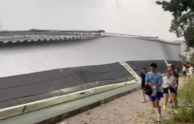 Mái sân chơi pickleball rộng hơn 800 m2 trên đường Phạm Hùng đổ sập trong cơn giông chiều 15/6, vài chục người chơi tháo chạy.