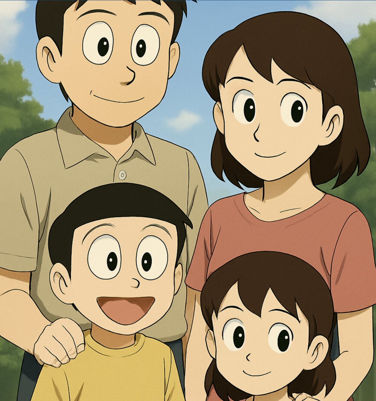 Thỉnh thoảng, cô nhận job dạy thêm nghệ thuật. Cả hai cũng tích tiền mua trả góp một căn nhà 3 lầu khang trang. Thế nhưng biến cố bắt đầu ập đến vào năm Nobita 40 tuổi - cậu mất việc do công ty cần “thay máu” nhân sự do thua lỗ, tình hình kinh doanh chẳng còn như trước.